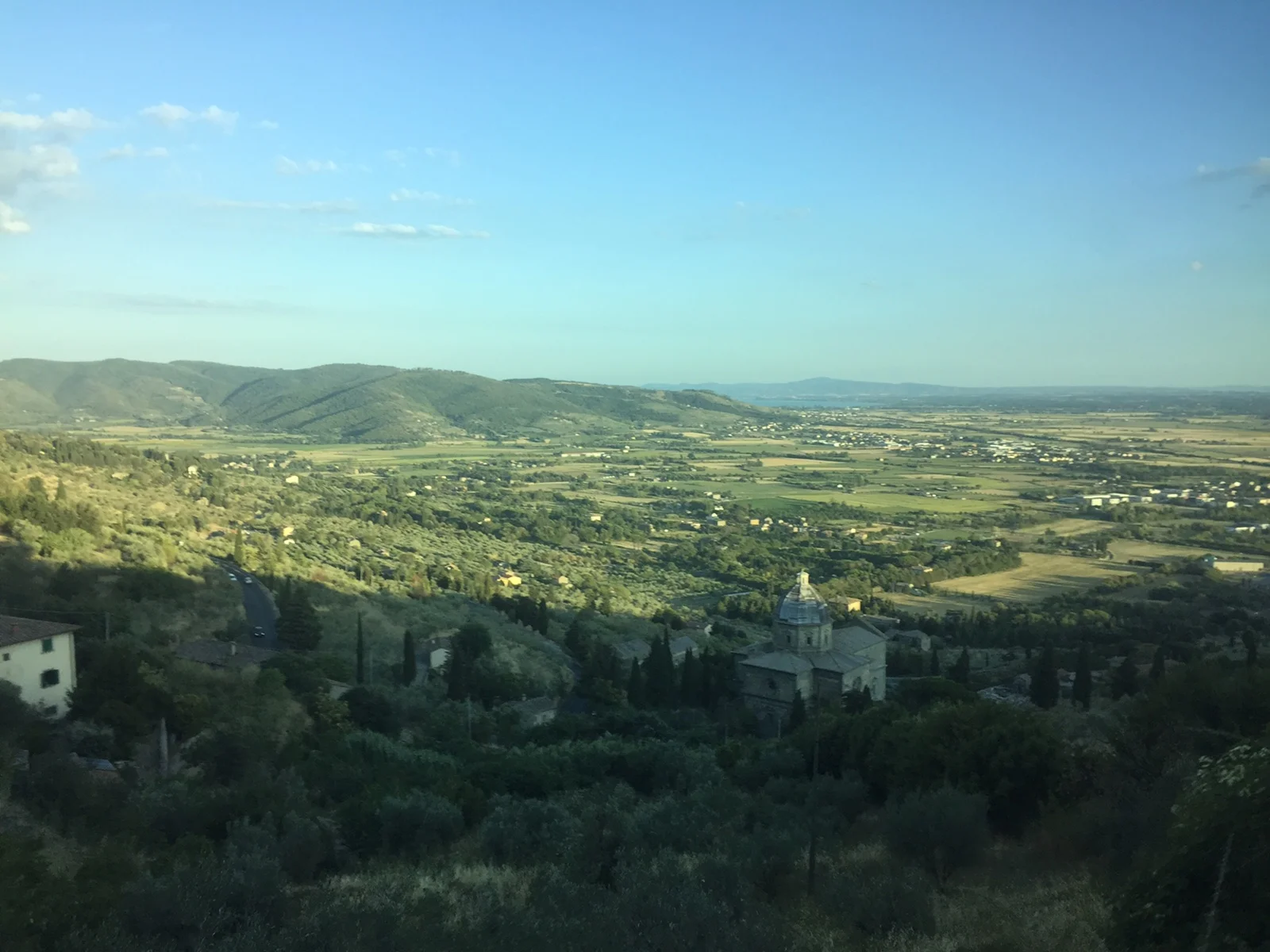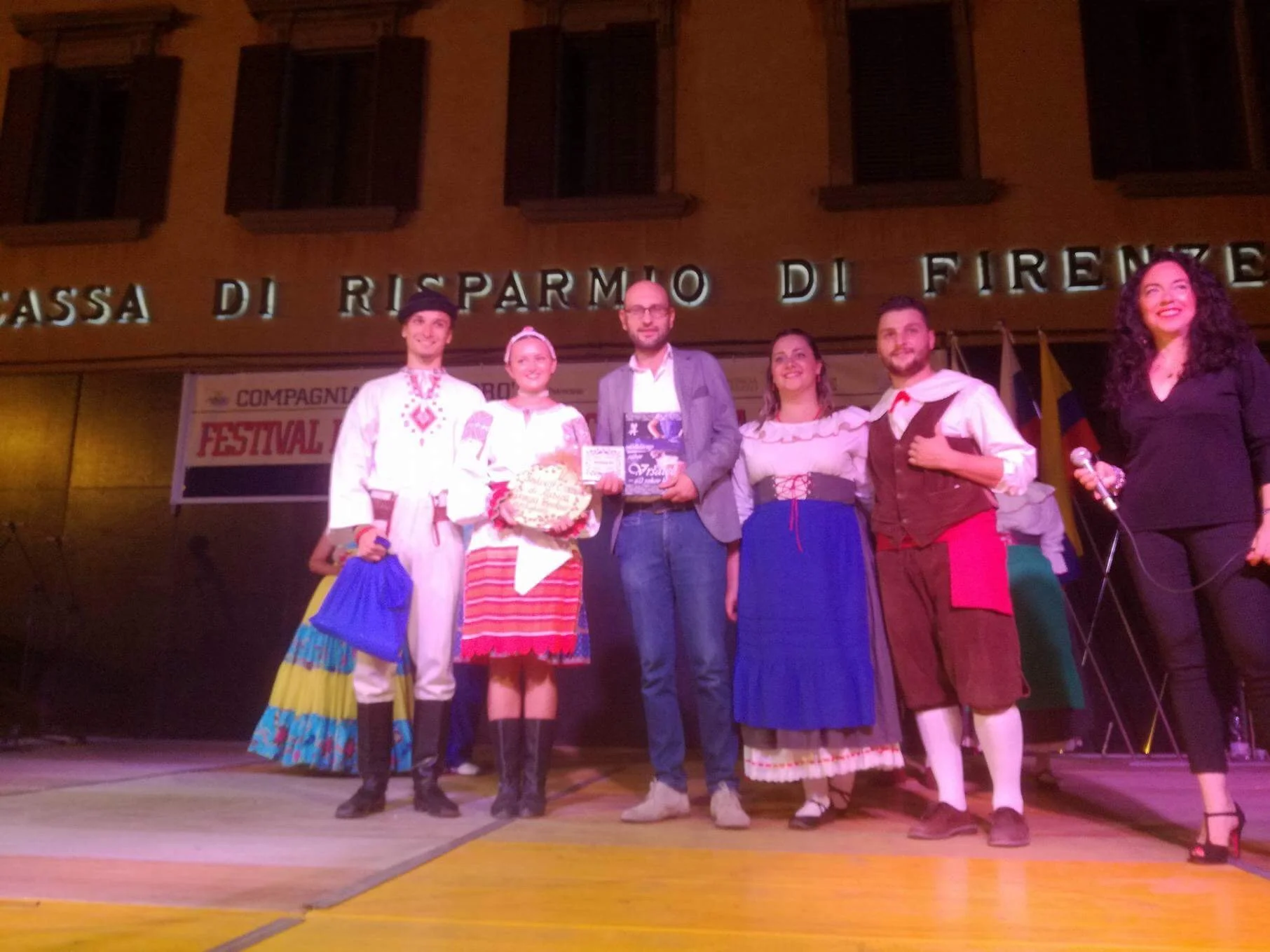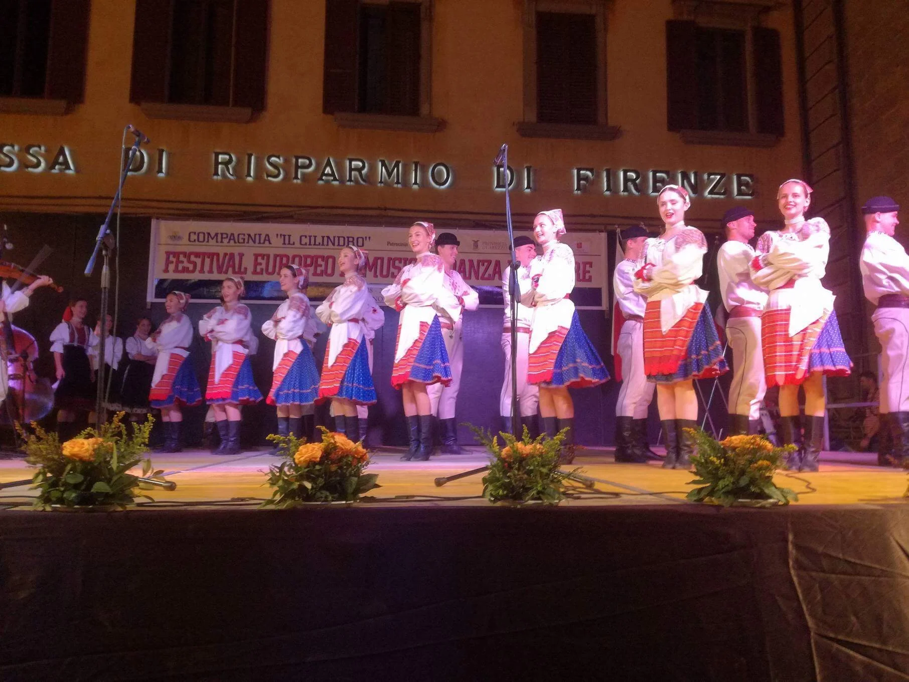 Naše prvé vystúpenie bolo v krásnom Toskánskom mestečku Cortona a vystupovali sme spolu so súborom z Poľska, Kolumbie a domácim súborom. Boli sme radi, že sme kroje a cimbal nemuseli niesť v rukách, ale odviezla nám ich dodávka až k javisku. Mestečko Cortona je totižto na kopci v nadmorskej výške 494 m.